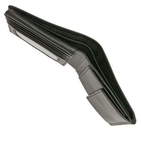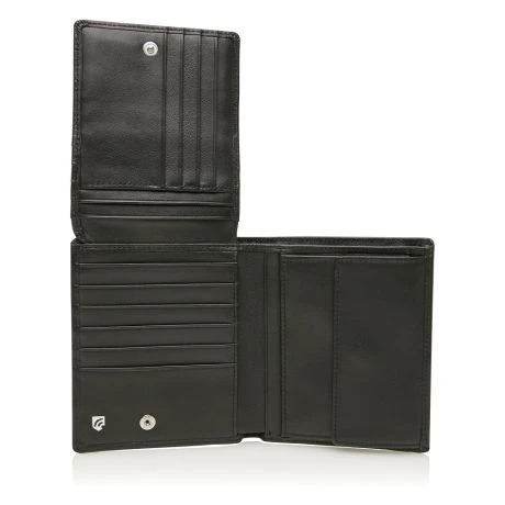 Portemonnee uit de Vita serie van Castelijn & Beerens. Met maar liefst 15 creditcardvakjes, ruime steekvakken voor briefgeld, een speciaal rijbewijs/id-kaart vakje en een vakje met drukknoop voor muntgeld. De portemonnee is voorzien van een high-tech folie, dat het uitlezen van de persoonlijke gegevens via de RFID-chip op pasjes volledig blokkeert. De leren portemonnees van de Vita serie van Castelijn & Beerens zijn een zakelijke no-nonsense lijn. De producten van Vita zijn gemaakt van soepele rundernappa die door en door geverfd is voor een ondoordringbare zwarte kleur. Voor de afwerking is een rond en nikkelkleurig C&B-logo gebruikt dat de no-nonsense-look van deze lijn afrondt.