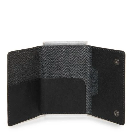 Luxe compacte portemonnee uit de Black Square serie van Piquadro. De collectie Black Square is gemaakt van full-grain Toscaans kalfsleer dat bewerkt is met plantaardige verf. De ongelijke look is het resultaat van een origineel proces, dat de warmte en de eigenschap van echt, onbewerkt leer behoudt. Na het looien plaatsen de deskundige handen de huiden in grote vaten gevuld met water zonder chemische stoffen toe te voegen. Het leer wordt dan gedroogd in trommels en vervolgens uitgelegd zodat vezels ontspannen. Dankzij dit proces, is elk stuk van de Black Square-collectie uniek. De kaarthouder met uitschuif systeem in deze portemonnee heeft ruimte voor 5 pasjes en biedt bescherming tegen skimmen.