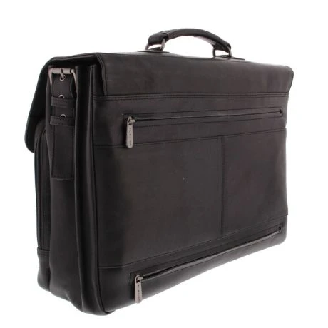 Leren aktentas uit de Decca serie van Plevier. Ruim ingedeelde laptoptas met 2 hoofdvakken waarvan een met gewatteerd 15.6″ laptopvak oa geschikt voor A4 materiaal en de ander met gewatteerd tablet vak. De tas heeft diverse multifunctionele vakken voor o.a.muis, bekabeling, visitekaartjes, mobiele telefoon, visitekaartjes, usb stick en pennen. Praktisch in gebruik met stevig handvat, verstelbare (afneembare) schouderriem en dubbele ritsen achterop waardoor ook met smart sleeve over een trolley te bevestigen.