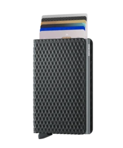 Met de Secrid cardprotector als basis, is de Miniwallet een compacte én veilige portemonnee. De portemonnee sluit af door middel van een drukknoopsluiting. De aluminium cardprotector in de Miniwallet beschermt uw belangrijkste passen optimaal, zowel tegen buigen, slijten en breken als tegen ongewenst uitlezen van RFID-kaarten (zoals de OV-chipkaart, ID-kaart, de nieuwste creditcards en bedrijfspasjes). De Secrid Miniwallet is geschikt voor 6 vlakke kaarten of 4 kaarten met verdikte letters. Naast zes kaarten in de cardprotector biedt het binnenwerk ruimte voor enkele kaarten, papiergeld, bonnetjes en visitekaartjes. De Secrid Miniwallet is een compacte portemonnee en vanwege de druksluiting gemakkelijk mee te nemen. Dankzij het unieke ontwerp schuiven de kaarten trapsgewijs naar buiten voor een eenvoudige selectie. De Secrid Miniwallet wordt geleverd in een mooie verpakking en daardoor ook zeer geschikt als uniek cadeau.