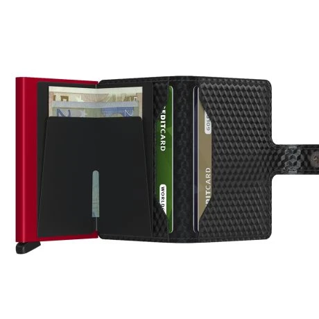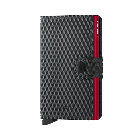Met de Secrid cardprotector als basis, is de Miniwallet een compacte én veilige portemonnee. De portemonnee sluit af door middel van een drukknoopsluiting. De aluminium cardprotector in de Miniwallet beschermt uw belangrijkste passen optimaal, zowel tegen buigen, slijten en breken als tegen ongewenst uitlezen van RFID-kaarten (zoals de OV-chipkaart, ID-kaart, de nieuwste creditcards en bedrijfspasjes). De Secrid Miniwallet is geschikt voor 6 vlakke kaarten of 4 kaarten met verdikte letters. Naast zes kaarten in de cardprotector biedt het binnenwerk ruimte voor enkele kaarten, papiergeld, bonnetjes en visitekaartjes. De Secrid Miniwallet is een compacte portemonnee en vanwege de druksluiting gemakkelijk mee te nemen. Dankzij het unieke ontwerp schuiven de kaarten trapsgewijs naar buiten voor een eenvoudige selectie. De Secrid Miniwallet wordt geleverd in een mooie verpakking en daardoor ook zeer geschikt als uniek cadeau.