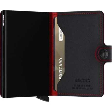 Met de Secrid cardprotector als basis, is de Miniwallet een compacte én veilige portemonnee. De portemonnee sluit af door middel van een drukknoopsluiting. De aluminium cardprotector in de Miniwallet beschermt uw belangrijkste passen optimaal, zowel tegen buigen, slijten en breken als tegen ongewenst uitlezen van RFID-kaarten (zoals de OV-chipkaart, ID-kaart, de nieuwste creditcards en bedrijfspasjes). De Secrid Miniwallet is geschikt voor 6 vlakke kaarten of 4 kaarten met verdikte letters. Naast zes kaarten in de cardprotector biedt het binnenwerk ruimte voor enkele kaarten, papiergeld, bonnetjes en visitekaartjes. De Secrid Miniwallet is een compacte portemonnee en vanwege de druksluiting gemakkelijk mee te nemen. Dankzij het unieke ontwerp schuiven de kaarten trapsgewijs naar buiten voor een eenvoudige selectie. De Secrid Miniwallet wordt geleverd in een mooie verpakking en daardoor ook zeer geschikt als uniek cadeau.
