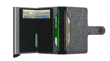 Met de Secrid cardprotector als basis, is de Miniwallet een compacte én veilige portemonnee. De portemonnee sluit af door middel van een drukknoopsluiting. De aluminium cardprotector in de Miniwallet beschermt uw belangrijkste passen optimaal, zowel tegen buigen, slijten en breken als tegen ongewenst uitlezen van RFID-kaarten (zoals de OV-chipkaart, ID-kaart, de nieuwste creditcards en bedrijfspasjes). De Secrid Miniwallet is geschikt voor 6 vlakke kaarten of 4 kaarten met verdikte letters. Naast zes kaarten in de cardprotector biedt het binnenwerk ruimte voor enkele kaarten, papiergeld, bonnetjes en visitekaartjes. De Secrid Miniwallet is een compacte portemonnee en vanwege de druksluiting gemakkelijk mee te nemen. Dankzij het unieke ontwerp schuiven de kaarten trapsgewijs naar buiten voor een eenvoudige selectie. De Secrid Miniwallet wordt geleverd in een mooie verpakking en daardoor ook zeer geschikt als uniek cadeau.
