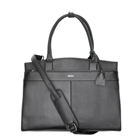 Stijlvolle zakelijke tas uit de Iconic serie van Socha. Deze serie heeft een ruime indeling en is geschikt voor A4 materiaal, met een gewatteerd en uitneembaar 14-15.6″ laptopvak (39x27x4 cm), 2 steekvakjes een smartphone en intern ritsvak. Ook is de tas volledig afsluitbaar middels een rits. De tas is gemaakt van Nivodur, wat bijna niet van echt leer is te onderscheiden. Met smart-sleeve om de tas aan een trolley te bevestigen.